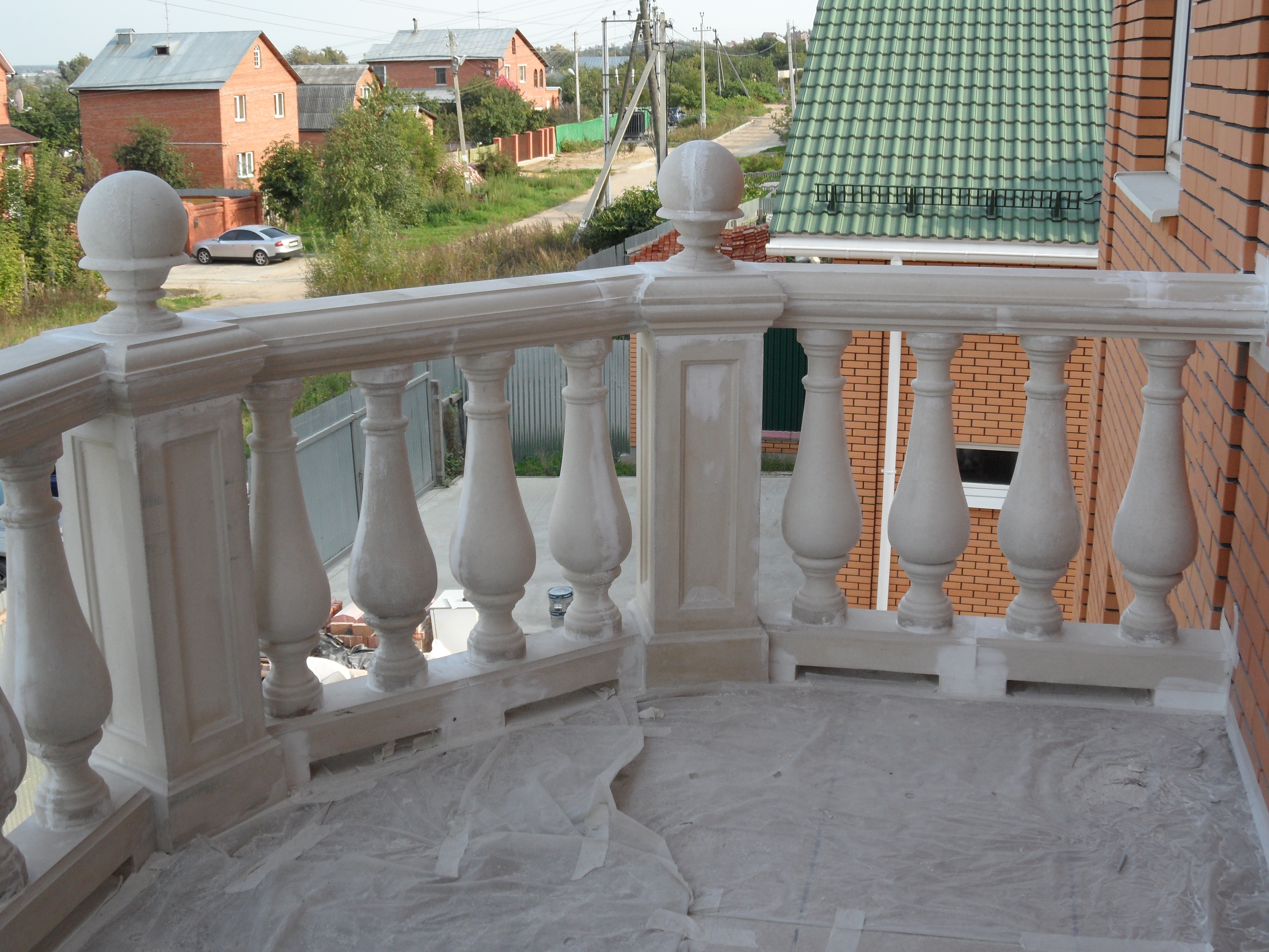 Были выполнены балясины, балюстрадные столбы, поручень и навершия в виде балюстрадных шаров.