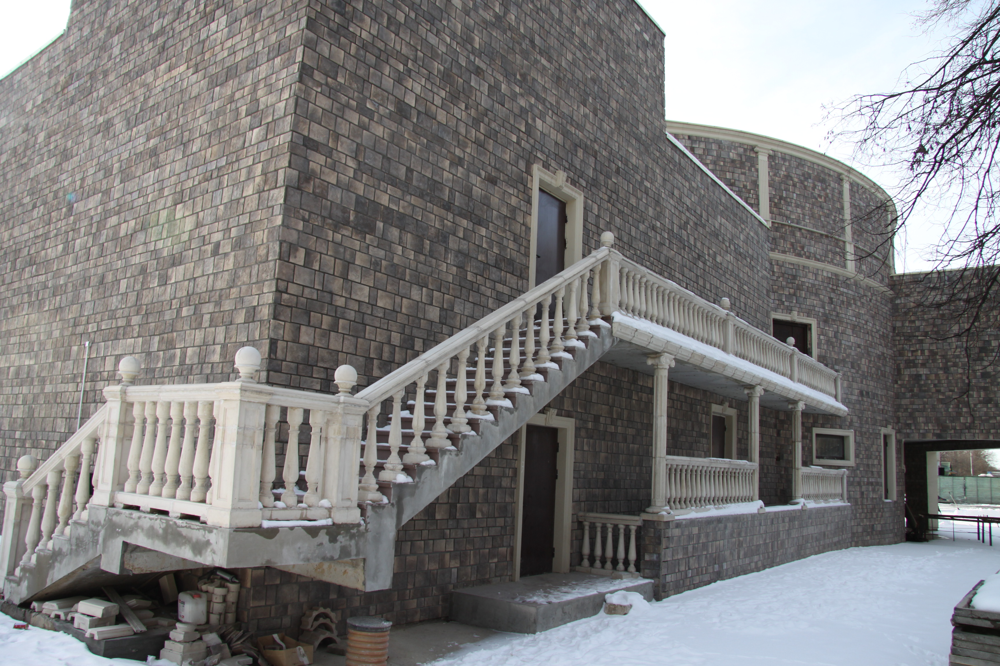 Проект потребовал производства искусственного камня для оформления стен здания. Была изготовлена балюстрада.